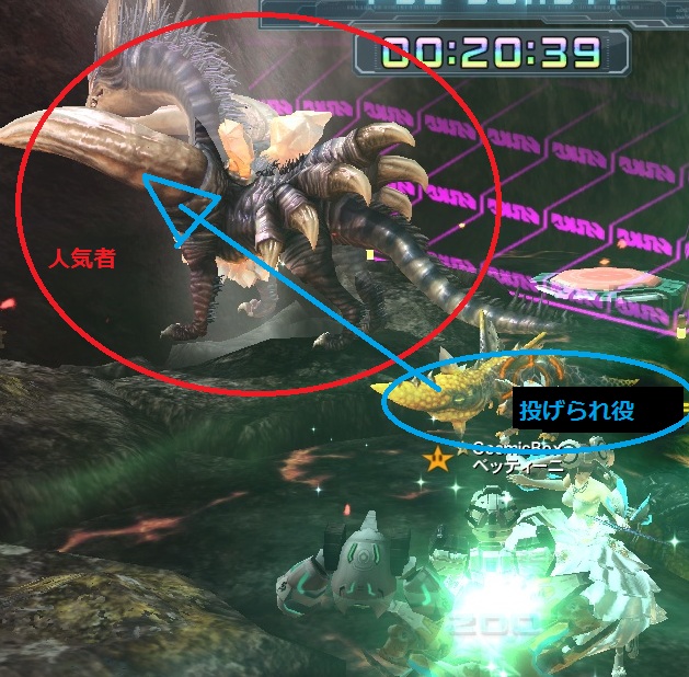 皆さんご存知の通り、PSO2はあまり雑魚の同期がとれておらず、投げ技はそれがとても顕著になります。