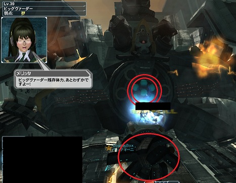すべての部位を破壊すると、甲板を走る電撃以外の攻撃手段がなくなり、フラフラするだけの存在になりますので、あとは弱点を攻撃するだけで……