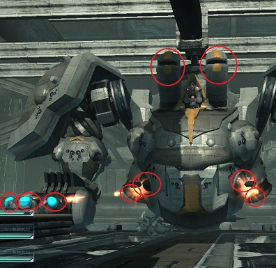 両肩のミサイルは最優先で壊します。遠距離職になんとかしてもらいましょう。
