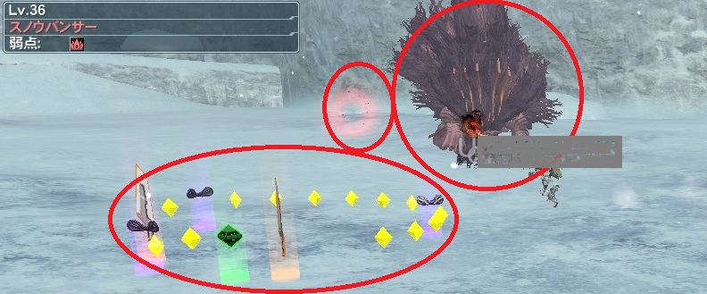 お分かりいただけるだろうか解説すると 手前がスノウバンシー(妻)のドロップ 流れ弾で割れてしまっている